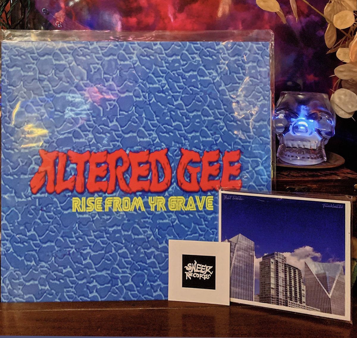 This available for one day only bundle includes the 'Rise From Yr Grave' limited edition vinyl by Altered Gee, the limited edition 'Funklantis' CD by Brett Eclectic & a Sneer Records logo sticker.